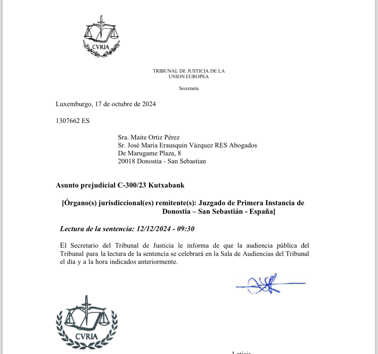 El juzgado especializado de Donostia eleva cuestión prejudicial al TJUE, solicitud de elevar que fue formulada por el despacho RES ABOGADOS. AUTO-ACUERDA-ELEVAR-PREGUNTAS-AL-TJUE-2Descarga